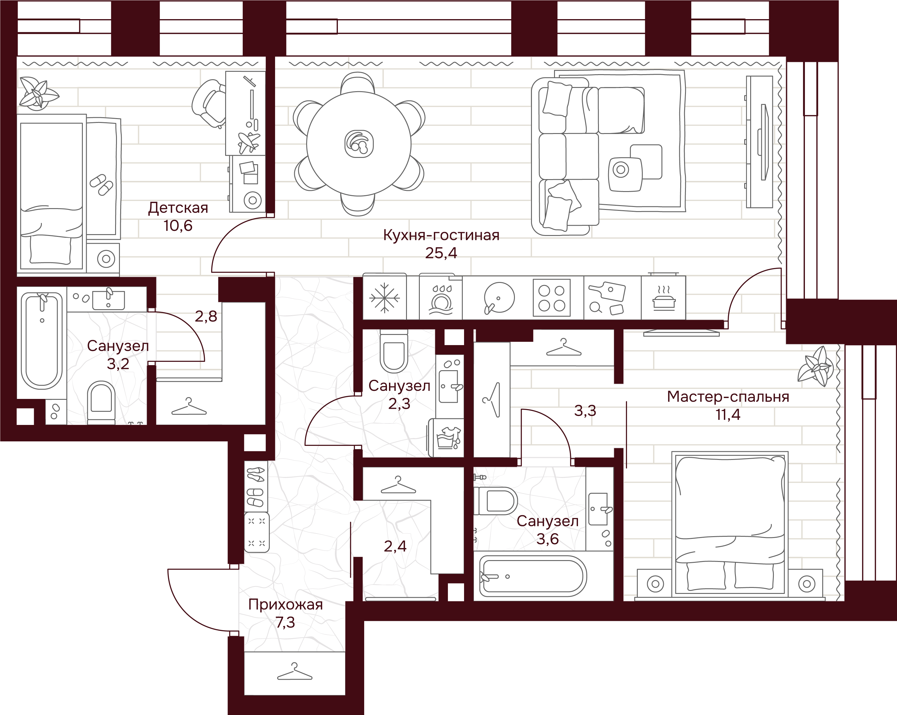 В дизайне мы опирались на стиль «Минимализм». Пастельные оттенки в его основе зрительно расширяют пространство и оптимально подходят для создания индивидуального интерьера с помощью цветовых акцентов и декора.