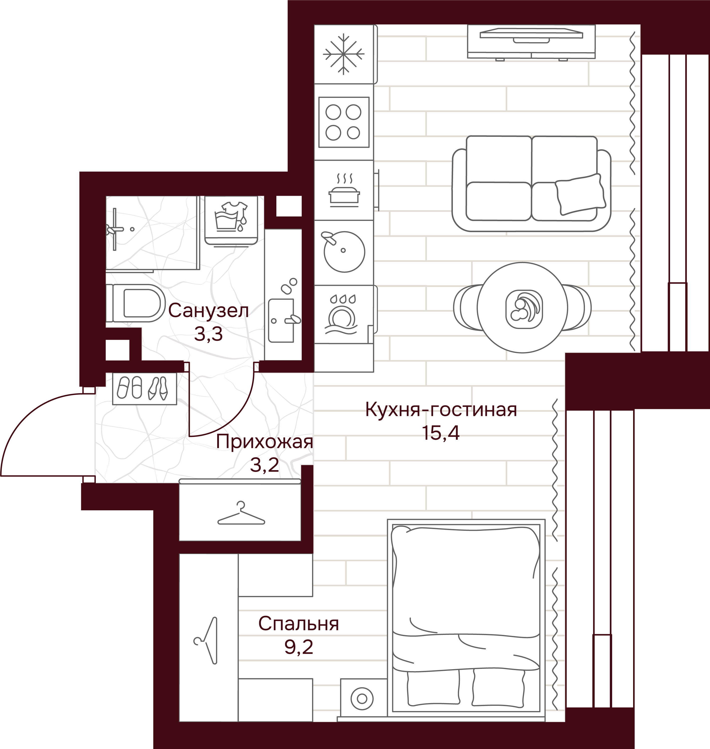 В дизайне мы опирались на стиль «Минимализм». Пастельные оттенки в его основе зрительно расширяют пространство и оптимально подходят для создания индивидуального интерьера с помощью цветовых акцентов и декора.
