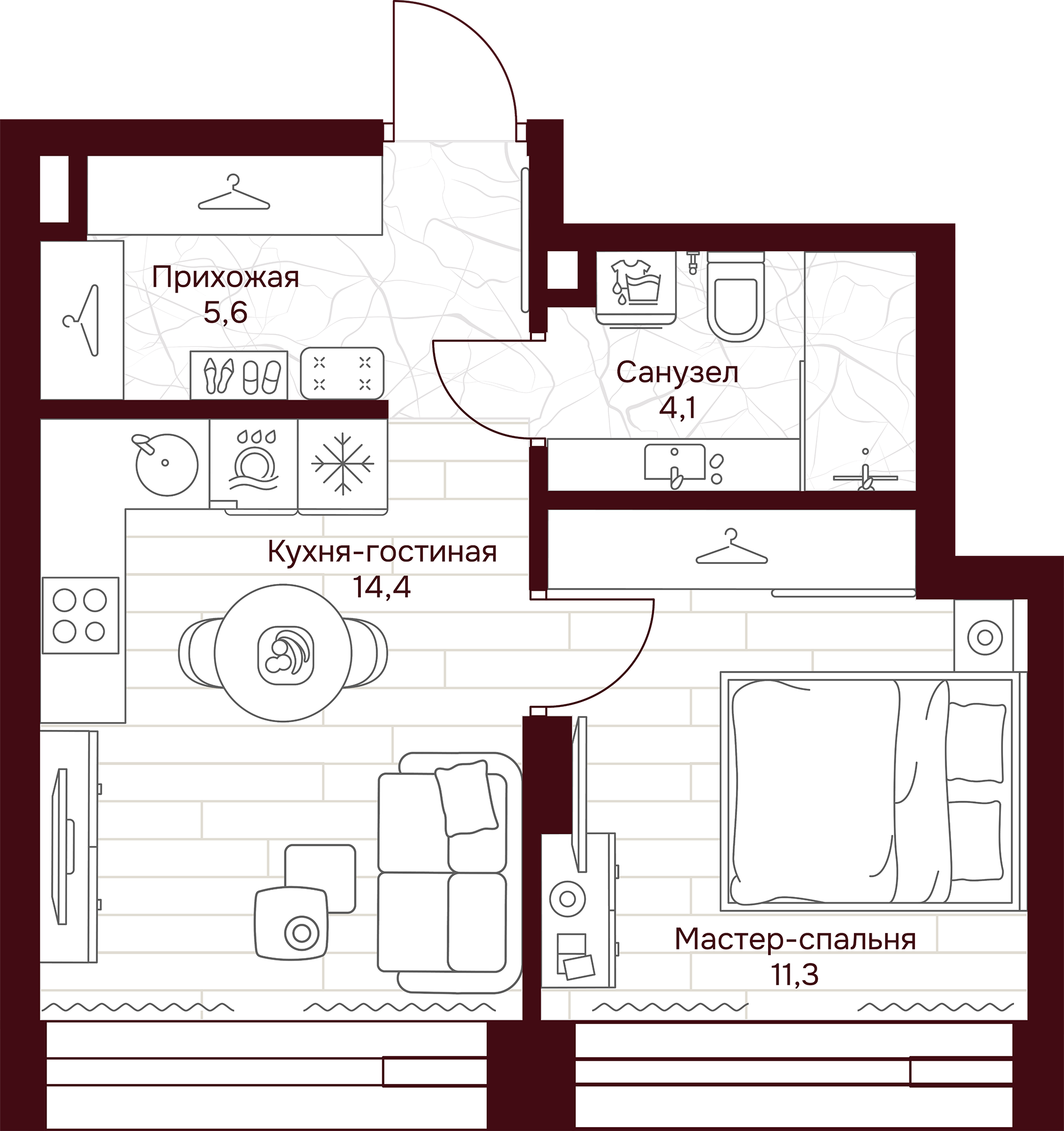 В дизайне мы опирались на стиль «Минимализм». Пастельные оттенки в его основе зрительно расширяют пространство и оптимально подходят для создания индивидуального интерьера с помощью цветовых акцентов и декора.
